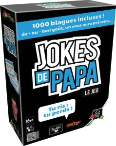 Jokes de papa est un jeu d’ambiance hilarant où deux équipes s’affrontent en racontant des blagues pourries. Préparez-vous à rire (ou à perdre) dans des duels pleins d’humour noir et décalé.