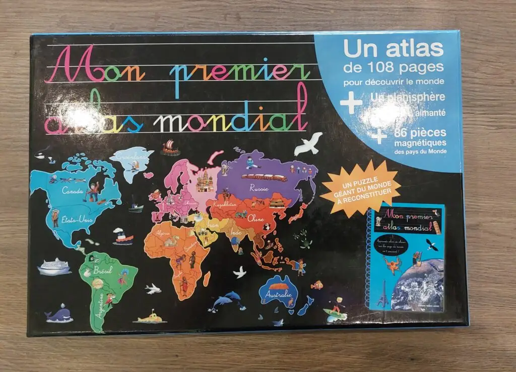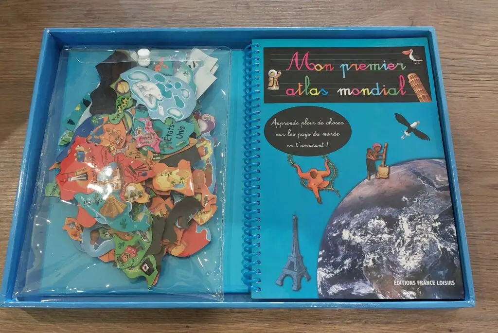 Une fois le puzzle géant complété, il peut explorer le livret-atlas pour découvrir :