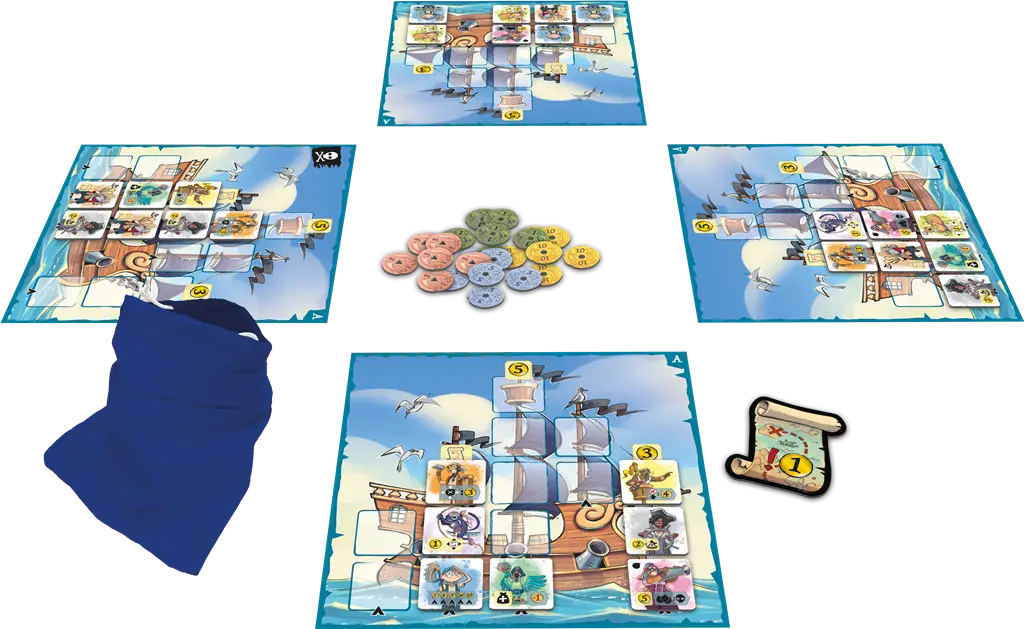 Partez à l’aventure avec Captain Flip et devenez le capitaine du navire le plus audacieux des mers ! Recrutez un équipage loyal, remplissez vos coffres de pièces d’or et défiez vos adversaires dans ce jeu de stratégie rapide. À chaque tour, piochez une tuile, décidez si vous la gardez ou la retournez, puis placez-la sur votre plateau pour renforcer votre équipage.