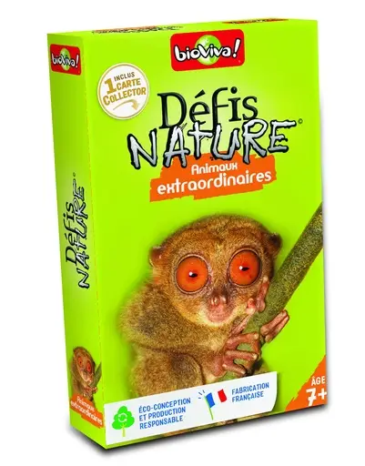 Le principe de Défis Nature est simple : lors d’un tour de jeu, les enfants à partir de 7 ans parient sur l’un des points forts de leur animal, lieu… Le joueur qui possède la plus forte caractéristique remporte les cartes des autres joueurs. Le premier à collecter toutes les cartes du jeu gagne la partie.