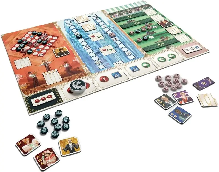 Dans Gatsby, un jeu pour 2 joueurs signé Bruno Cathala et Ludovic Maublanc, vous incarnez Dorothy Williams ou James Miller, et rivalisez pour séduire la haute société de West Egg.