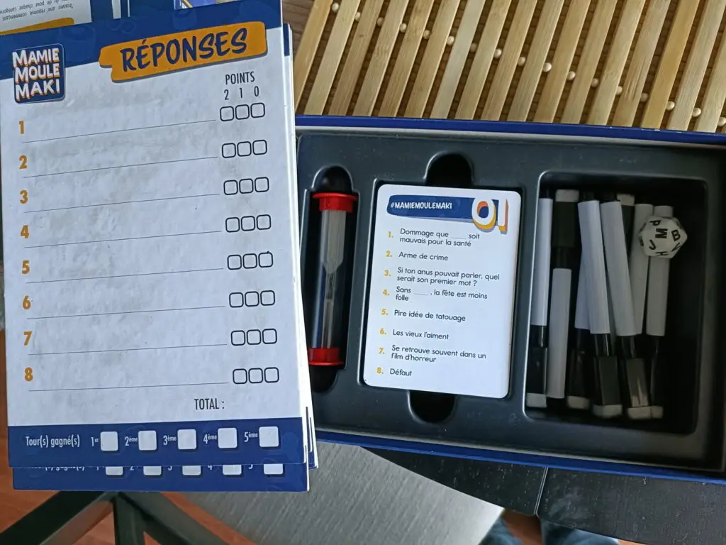 Entrez dans l’univers délirant de Mamie Moule Maki, un jeu d’ambiance où rapidité, créativité et culture générale sont mises à l’épreuve. L’objectif est de remplir des catégories insolites en un temps limité et de défendre ses réponses face aux votes des adversaires.