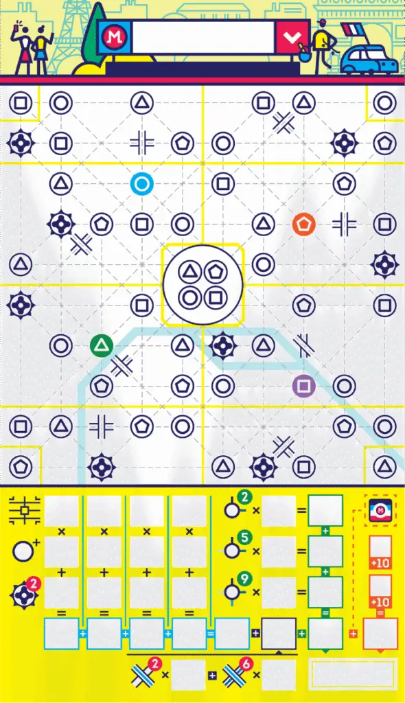 Next Station Paris se joue en équipe, où vos actions sont guidées par les cartes dictant vos déplacements et choix stratégiques. Pour ceux qui préfèrent l’aventure en solo, construisez vos lignes de métro selon l’ordre des crayons de couleur disposés sur votre aire de jeu, et tentez d’atteindre le plus haut score possible.