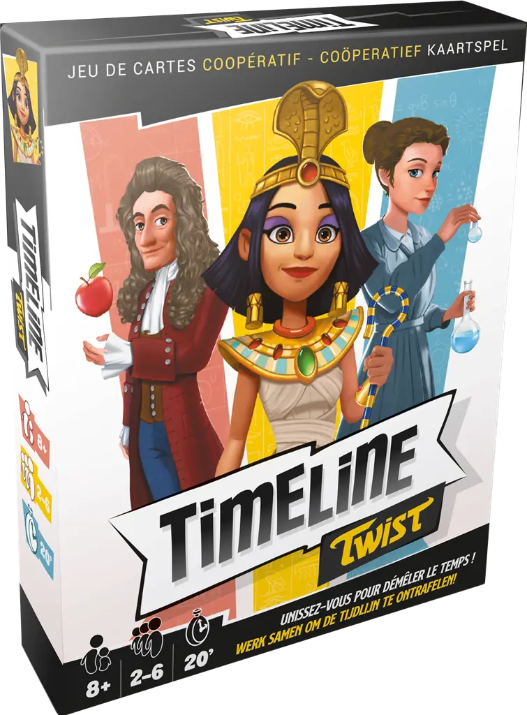 Timeline Twist vous propose un défi coopératif unique pour remettre de l’ordre dans l’histoire. 35 cartes à placer en bon ordre exigent coordination et réflexion collective. Nouvelle version avec cartes agrandies pour jouer avec l’inattendu historique.
