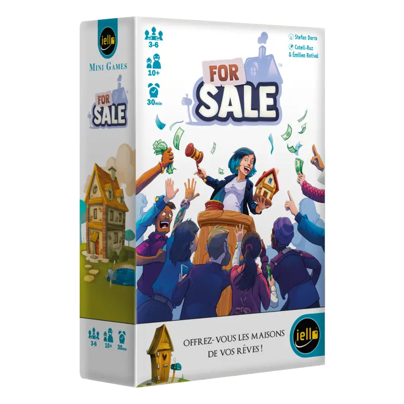 Dans For Sale, enchérissez pour acheter des maisons à bas prix et revendez-les à un prix élevé. Faites preuve de stratégie pour maximiser vos profits tout au long du jeu. Un jeu d’enchères où chaque décision compte pour devenir le meilleur agent immobilier !